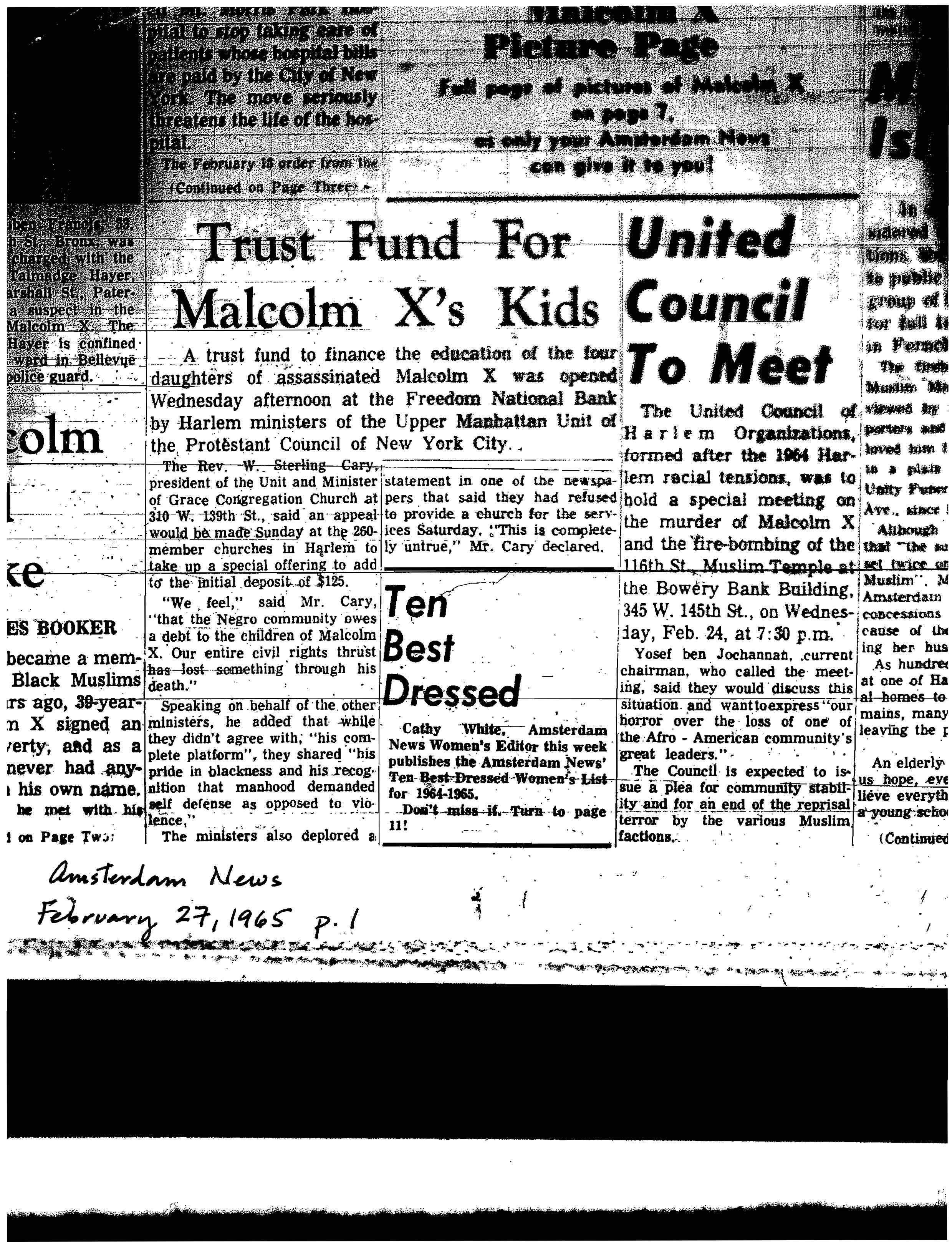 “Trust Fund for Malcolm X’s Kids,” Amsterdam News, February 27, 1965, p. 1.