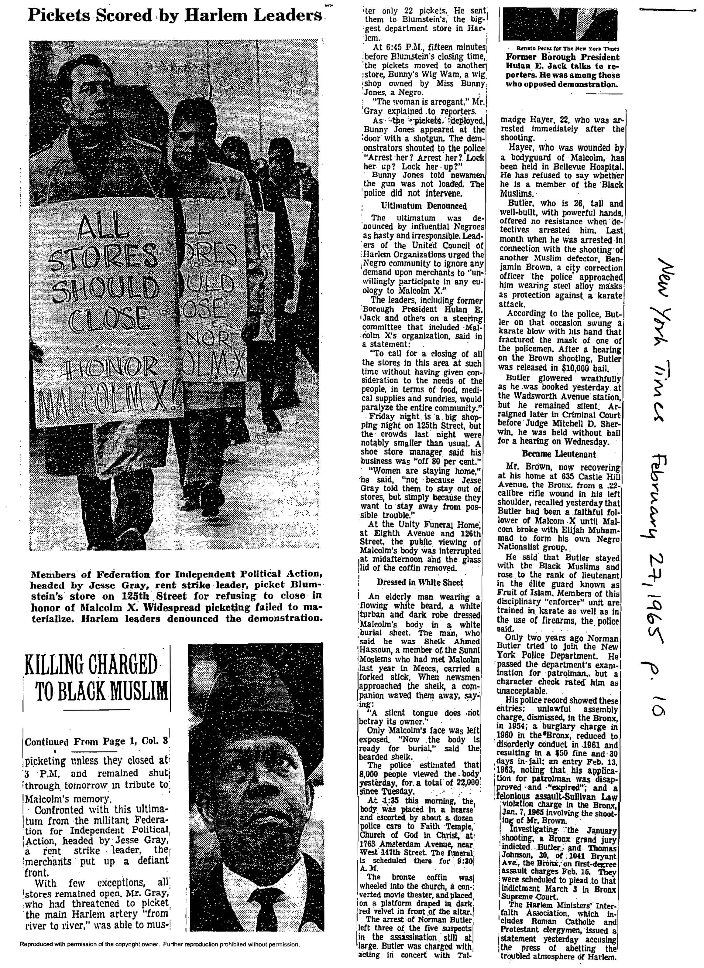Jones, “Malcolm Knew He Was a ‘Marked Man’,” New York Times, February 22, 1965, pp. 1, 11.