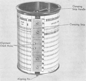 Another device, the 056 Verifier looked and worked like the 026 card punch, but instead of punching holes in the card, it verified that the holes that were already in the card matched the operator's keystrokes. Any column that did not match received a notch at the top of the card. If the card was OK, a notch was cut on the right edge. Columbia didn't have any verifiers, but they were used in installations such as banks and the military, where transcription errors could have more serious consequences than points off your homework. To minimize systematic errors, a card deck would be punched by one operator and verified by a second. Another error-control technique was to punch sequence numbers in columns 72-80. This could be done automatically by various EAM equipment, or by host-driven punches, and allowed dropped decks to be sorted (in a sorter).