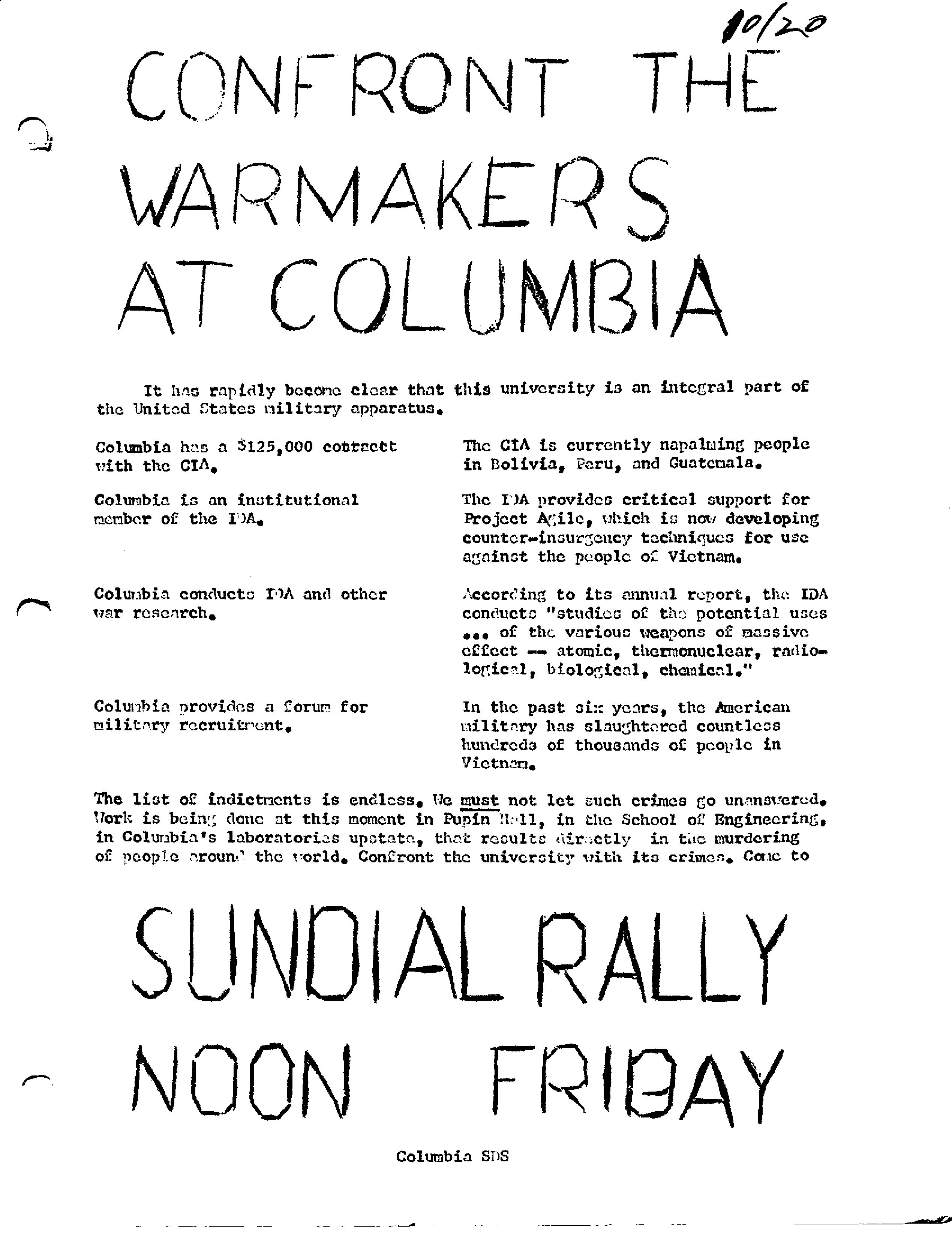 Columbia University. Student cafeterial worker strike leaflet, March 4, 1968.