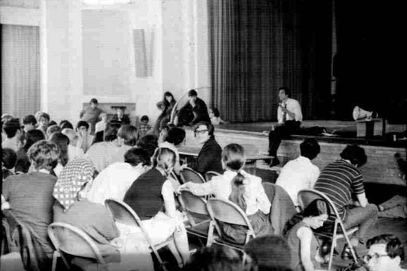 One of many teach-ins at Columbia University in 1968, most of them focussing on the Vietnam War and related issues.