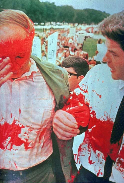 at a nonviolent 1965 antiwar demonstration in Washingon DC, are splattered