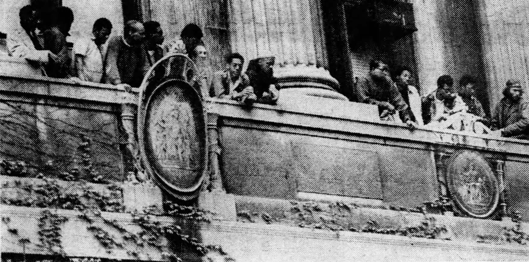 Black students and friends on Hamilton Balcony, Melvin Morgulis at right. Photo:
