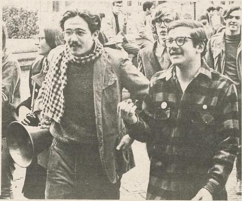 Previous SDS president Ted Kaptchuk with Ted Gold, probably in 1967. Thanks to the white-supremecist Occidental Observer for unearthing this photo for their "Jews of Weatherman" series.