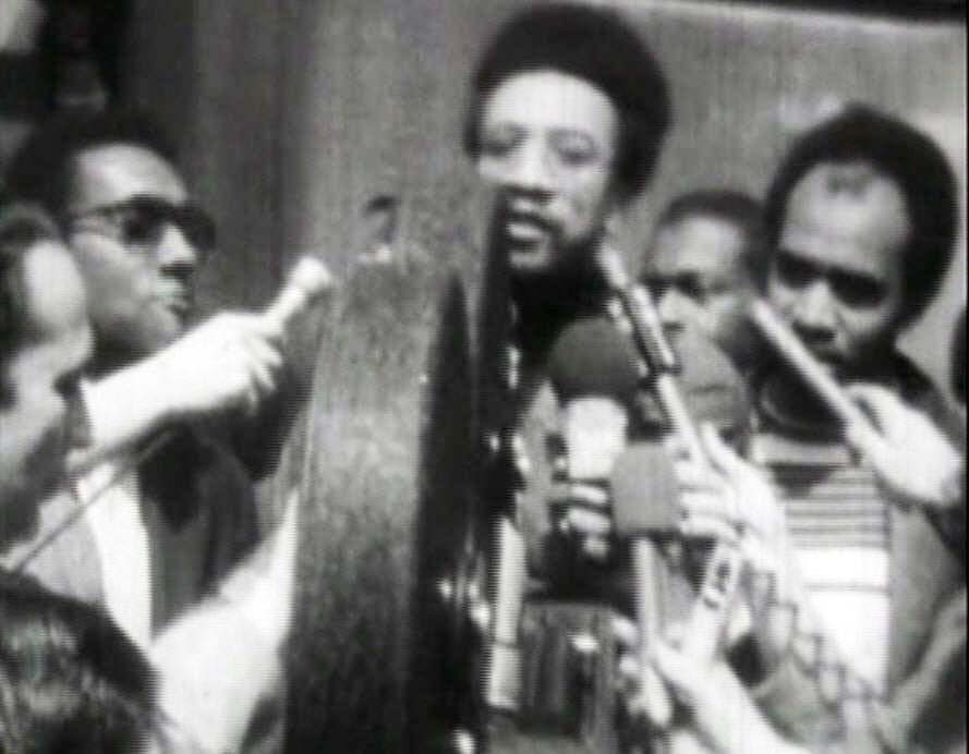 H. Rap Brown at a news conference in front of Hamilton, probably April 24.