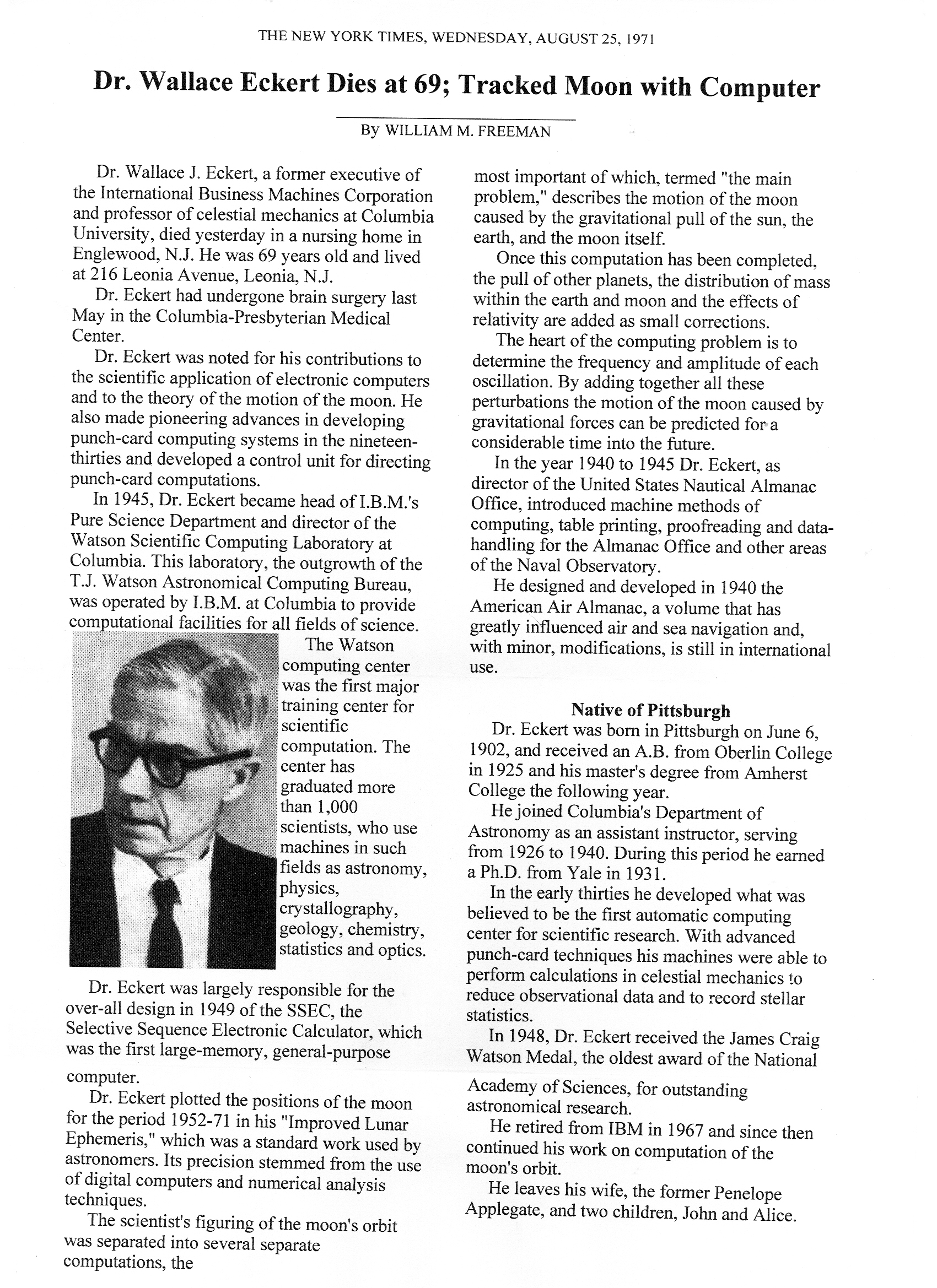 Image of Eckert's death notice in the