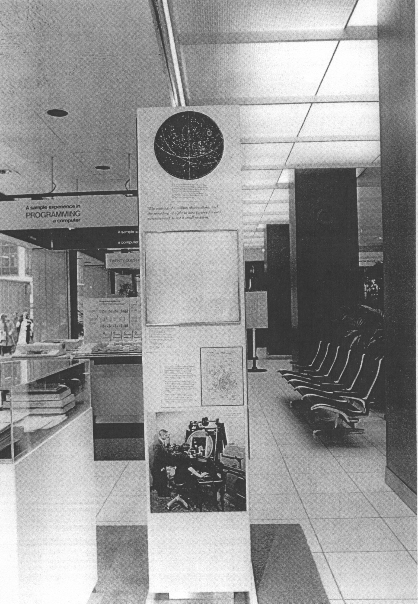 (far left) and a small IBM computer (whose console is partially hidden by the