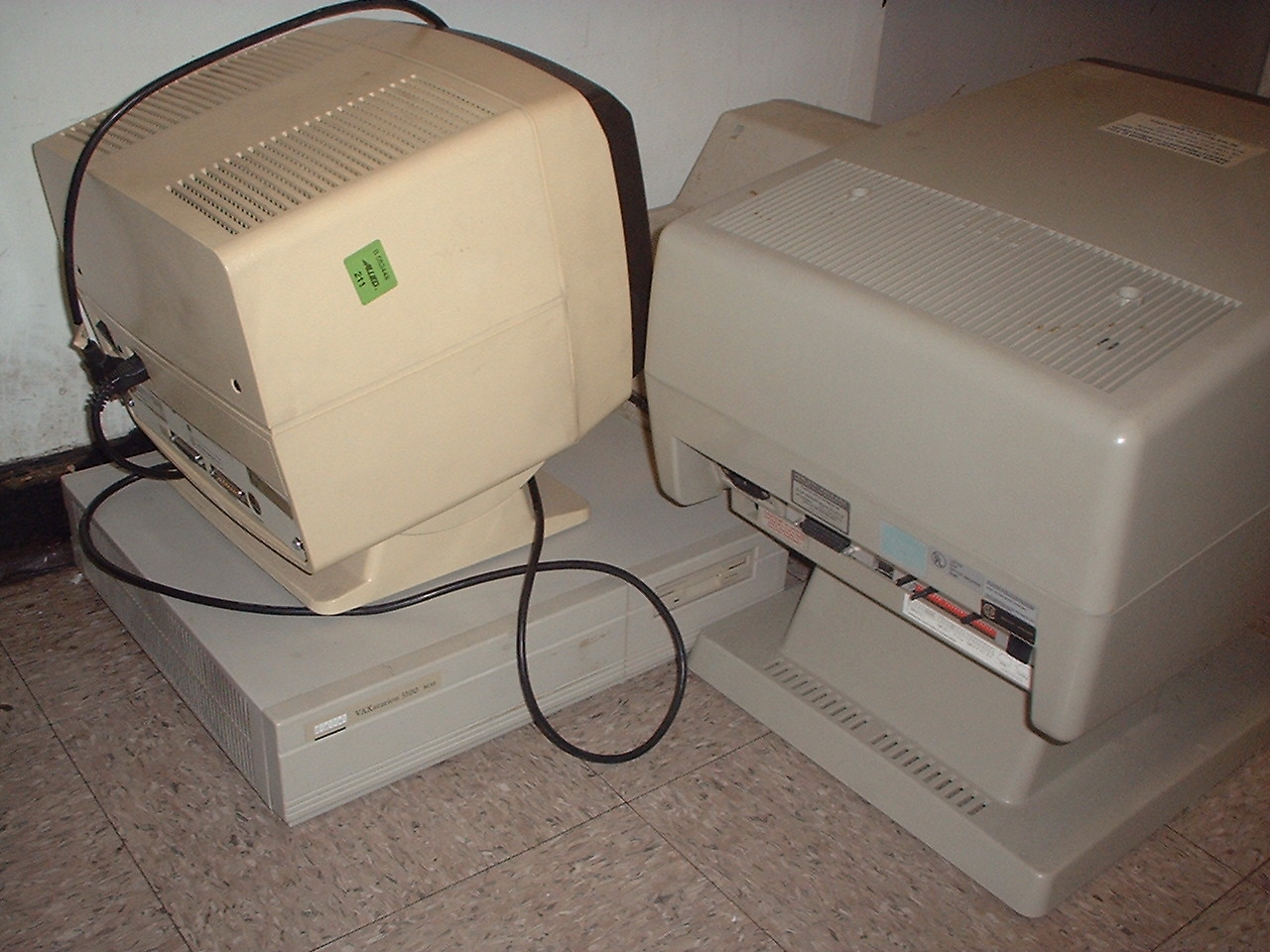 DG Dasher sitting on a Digital Equipment Corporation VAXstation 1000 and the back of the HP-2621.