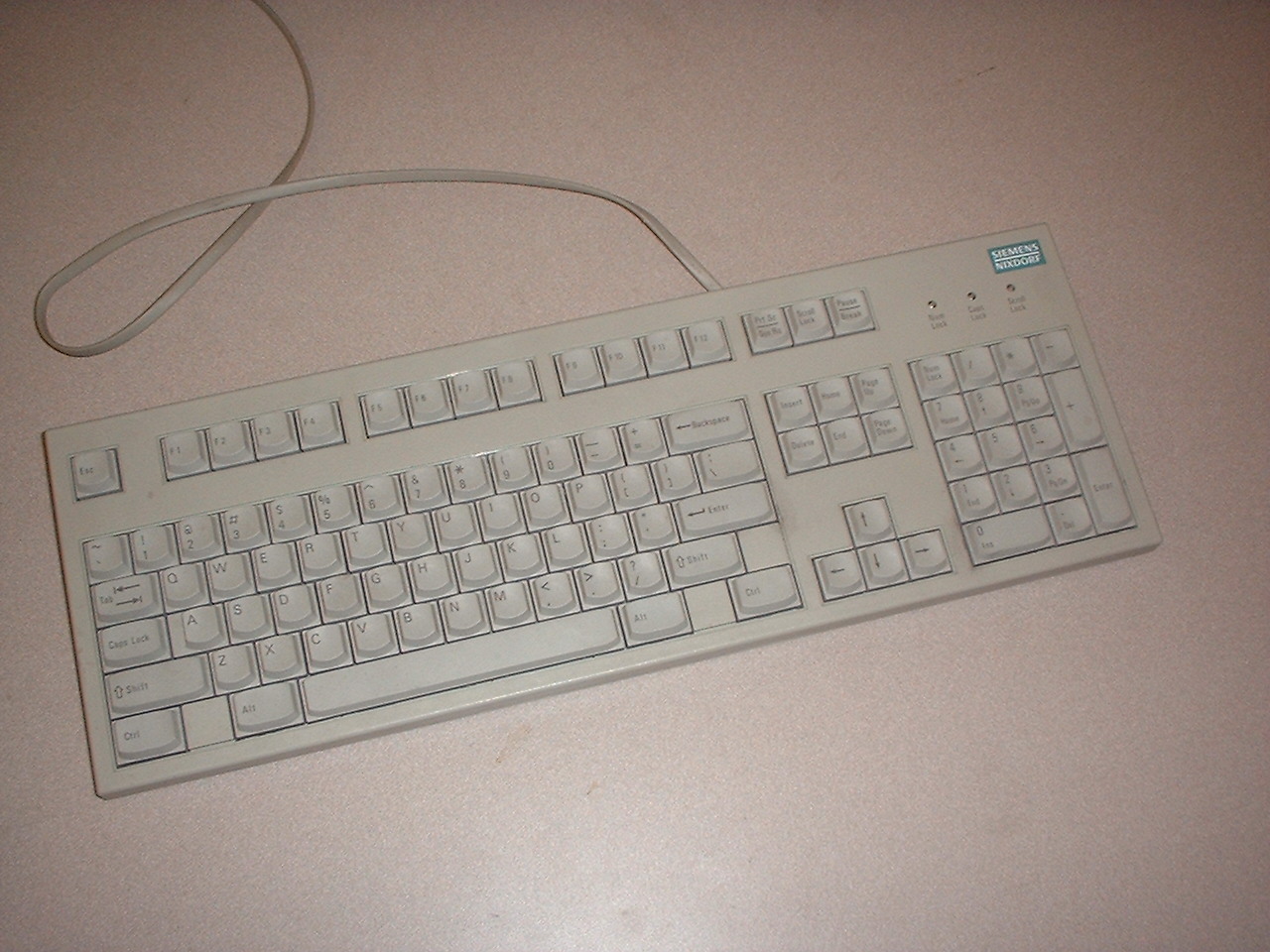 Siemens-Nixdorf keyboard for its SINIX workstation (not terminal). This one follows the new "standard" in which the Ctrl and Esc keys are out of reach because they are "too technical" for the new breed of computer users.