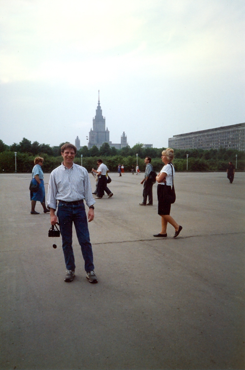Me in a big plaza facing the Moscow Circus. The scary looking building in the background is one of Stalin's